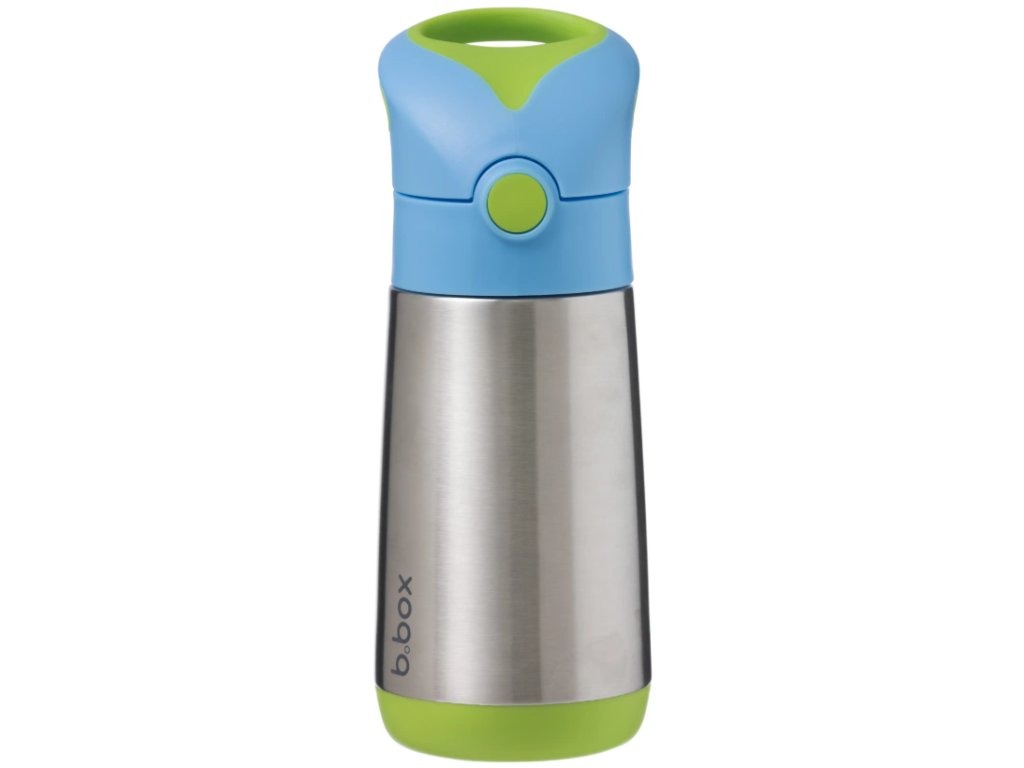 Dvojplášťová termoska z nerezovej ocele udrží tekutiny studené až 7 hodín a teplé až 5 hodín. Silikónová slamka dovolí vypiť z termosky aj tú poslednú kvapku a viečko má držadlo pre jednoduché nosenie alebo zavesenie na batoh, kočík a pod. Termoska sa po ľahkom stlačení "tlačidla" zľahka otvorí.