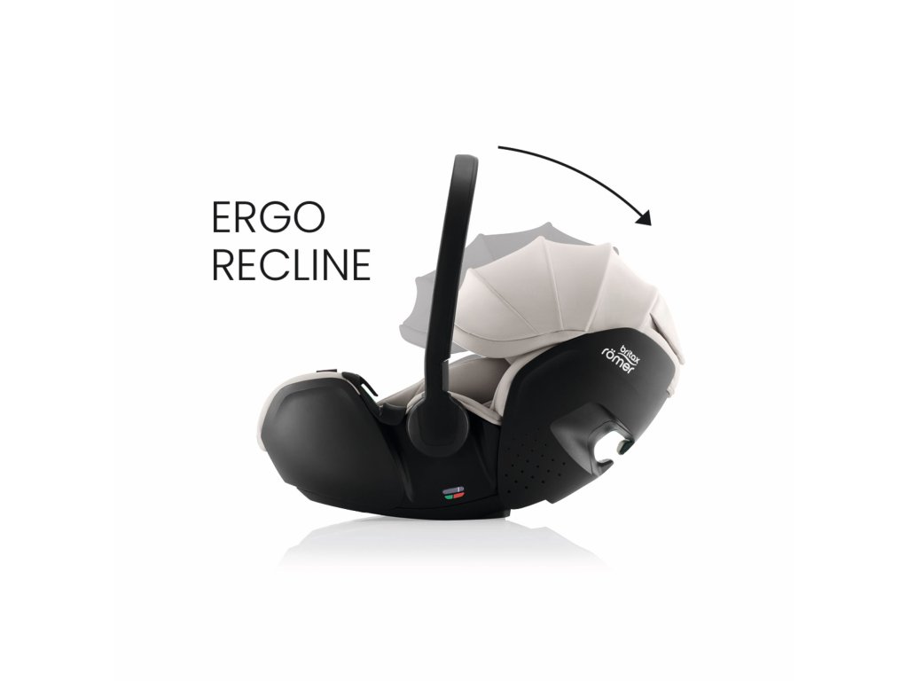 Ergo Recline umožňuje nastaviť ideálny sklon autosedačky pre zdravšiu polohu bábätka. Naklonená poloha je ergonomickejšia a rovnobežnejšia, podporuje správny vývoj chrbtice a zabezpečuje voľné dýchacie cesty. Vďaka Ergo Recline možno autosedačku ľahko a rýchlo polohovať bez ohľadu na to, kde sa práve nachádzate. Vaše bábätko môže pohodlne a bezpečne spať počas každej cesty, či už v aute alebo mimo neho.