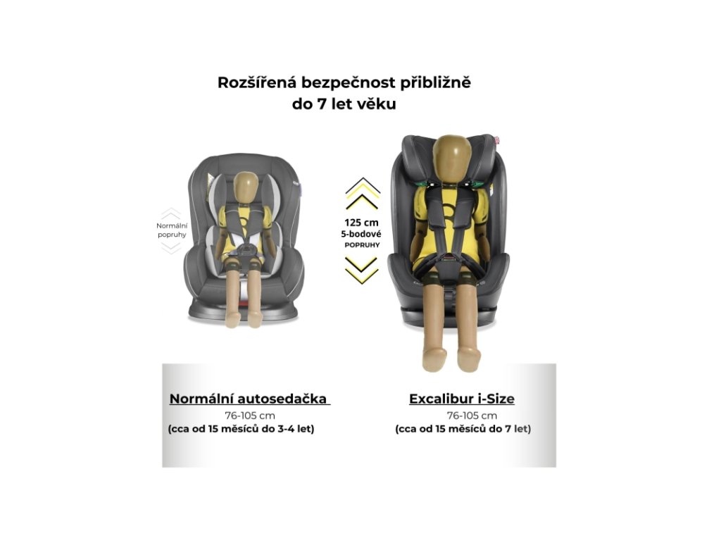 - Unikátny predĺžený 5-bodový pás do 125 cm (cca 6 rokov)