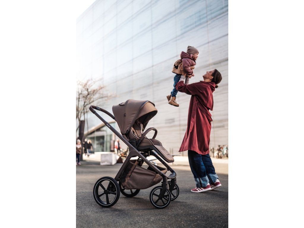 - Veľké, pohodlné sedadlo s tromi nastaviteľnými polohami sklonu, ktoré možno ľahko prepínať medzi režimami orientácie smerom v jazde a proti smeru jazdy