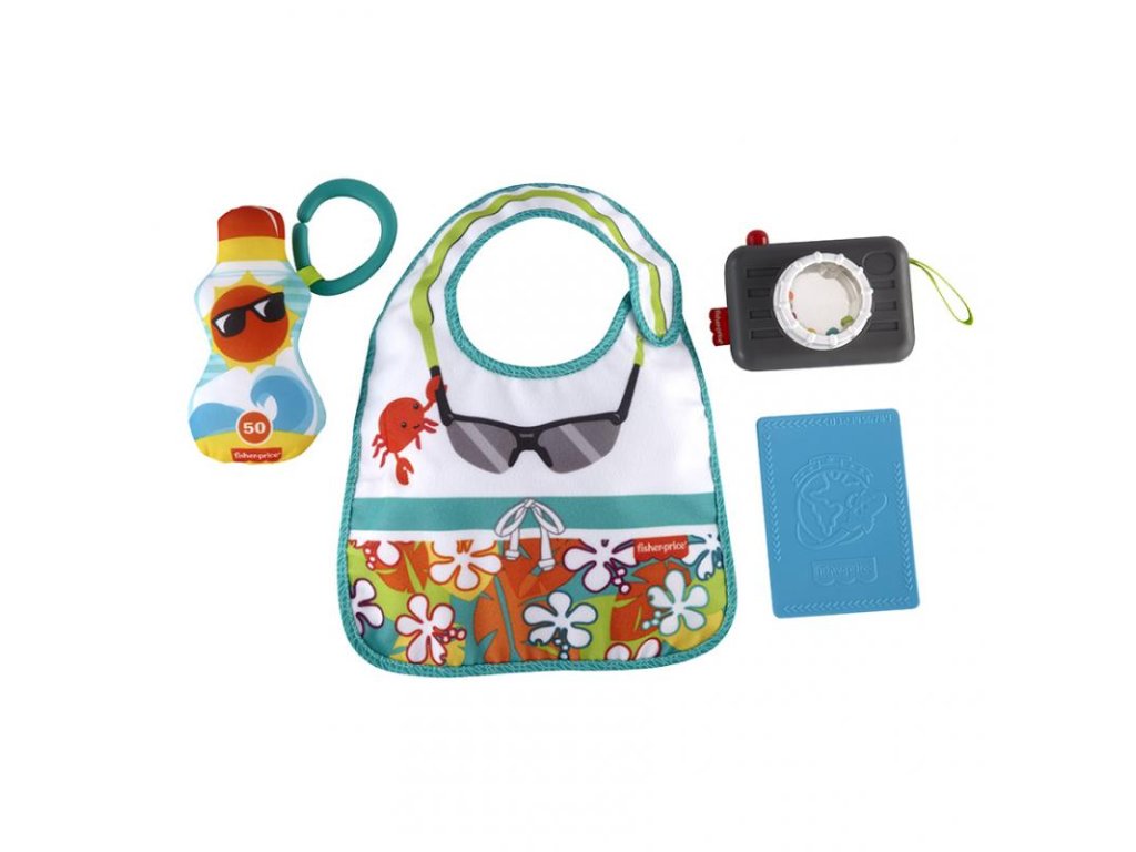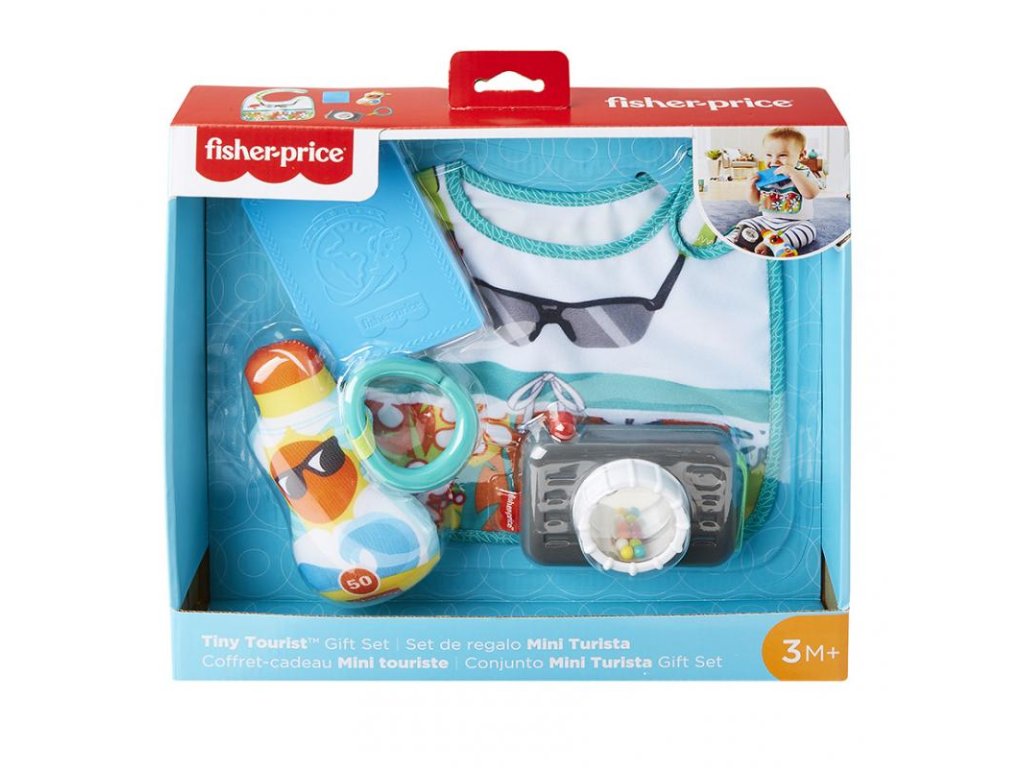 S Fisher-Price® Darčekovým setom pre malých turistov sa môžu malí milovníci cestovania vydať na rôzne miesta a byť vybavení 4 doplnkami na dovolenku.