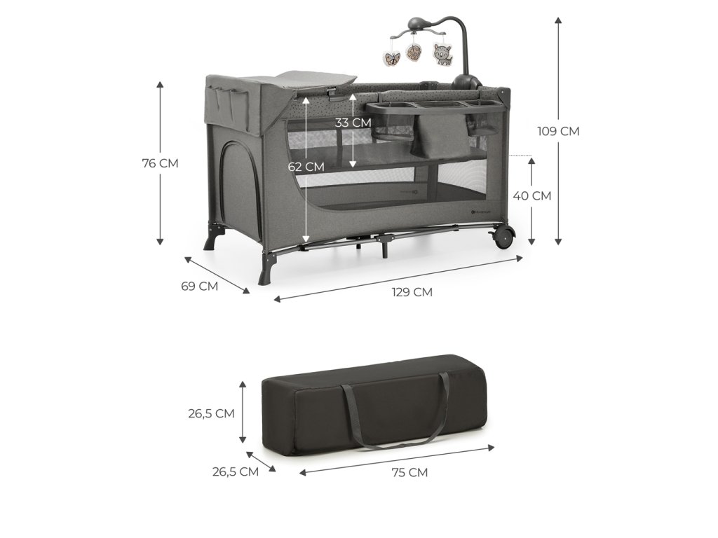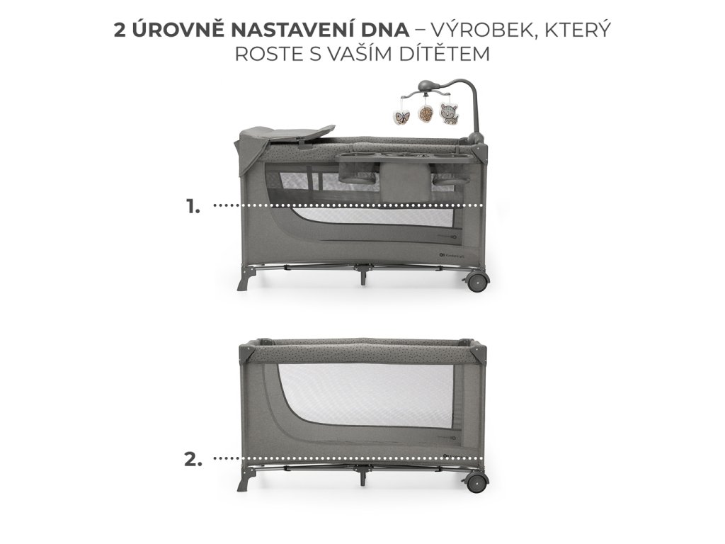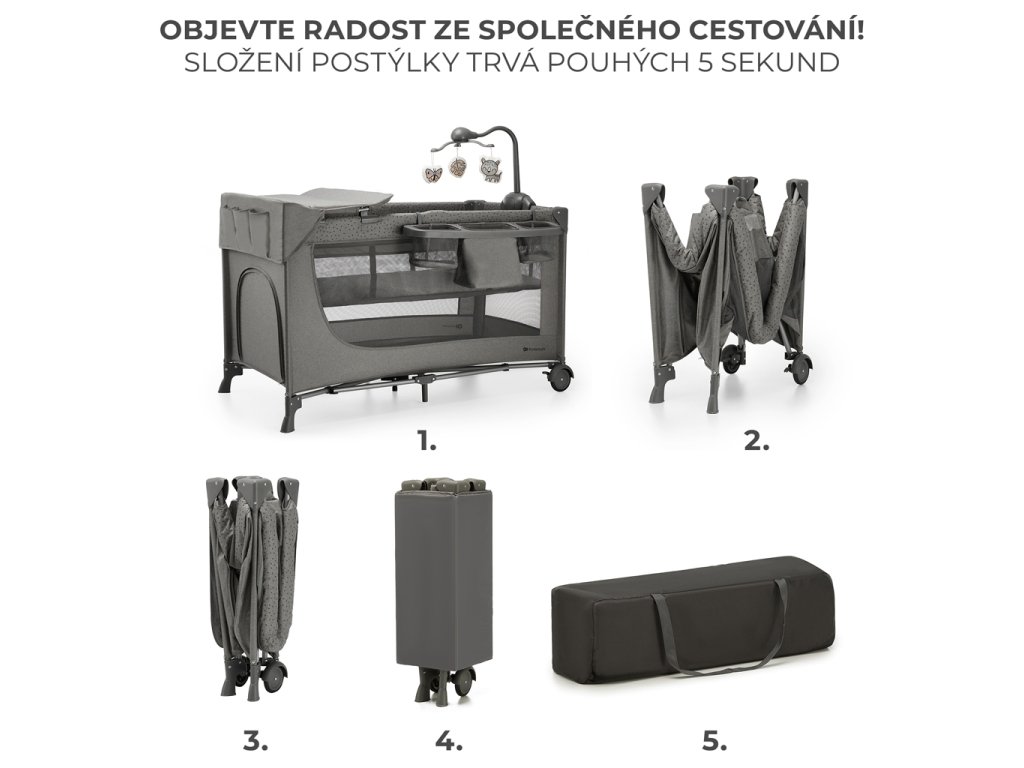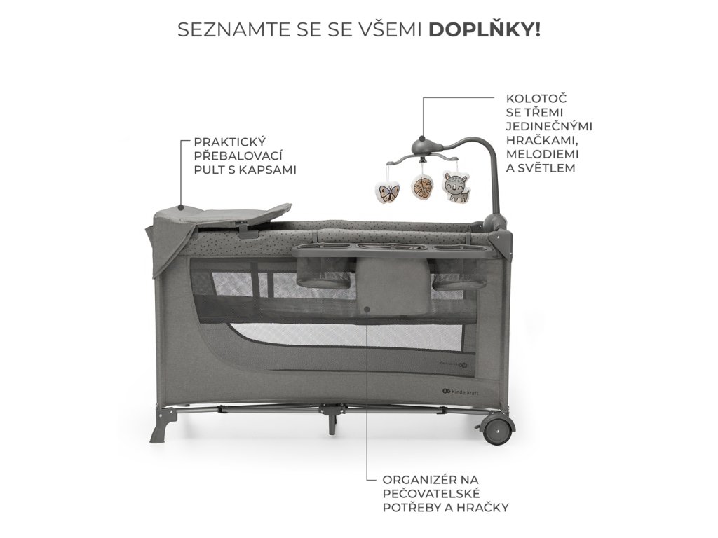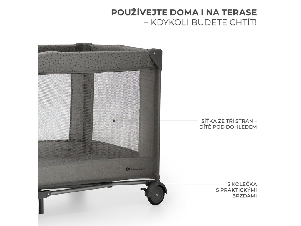 KINDERKRAFT Postieľka cestovná Joy 2 s doplnkami Dark grey
