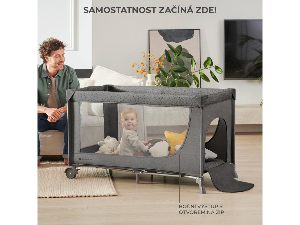 - Bočný vstup umožní dieťaťu samému vchádzať a vychádzať z postieľky.
