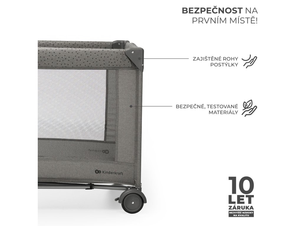 - 3 strany postieľky sú vyrobené zo sieťoviny, ktorá zaisťuje správnu cirkuláciu vzduchu. Umožňuje vám tiež sledovanie dieťa.