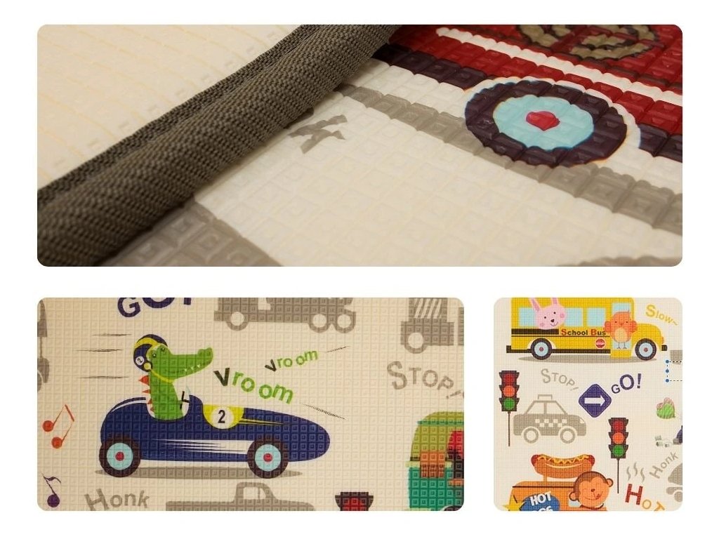 Rozmanitosť zábavy: Podložka je plná obrázkov autíčok, ktoré stimulujú zmysly vášho bábätka.