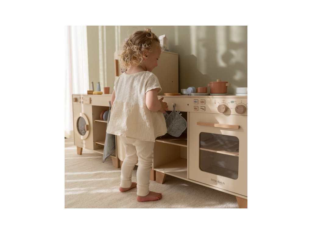 Vďaka možnosti kombinácie s chladničkou alebo práčkou z kolekcie drevených hračiek Little Dutch je možné vytvoriť plne vybavenú hernú kuchyňu. Tú potom môžete doplniť ďalšími drevenými hračkami Little Dutch, napr. kávovarom, sendvičovačom, kuchynskou váhou, krájacím ovocím, krájacou zeleninou, čajovým servisom a pod.