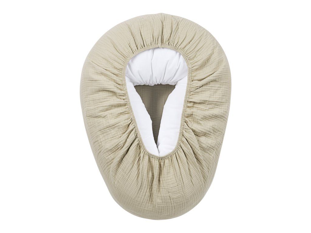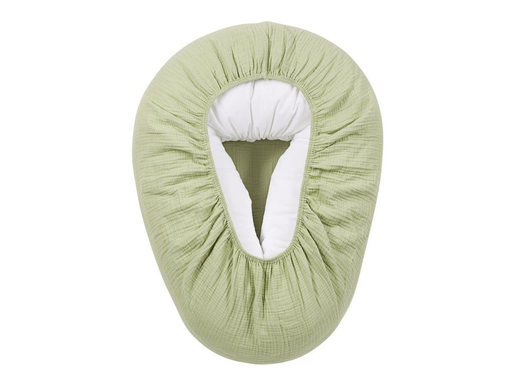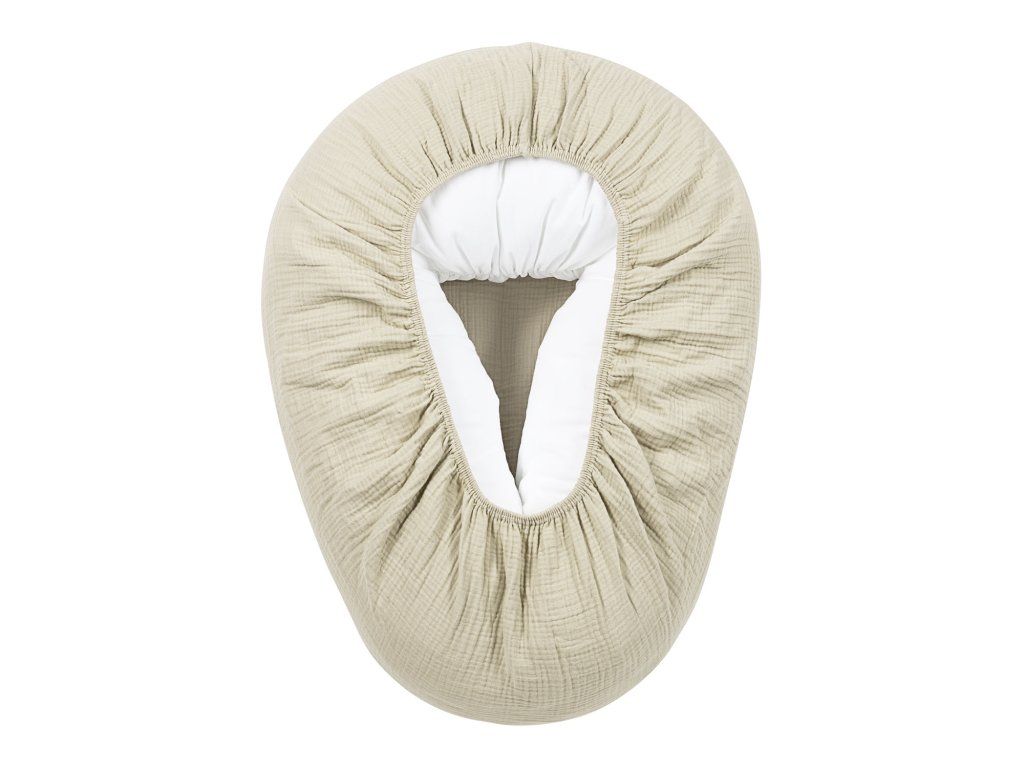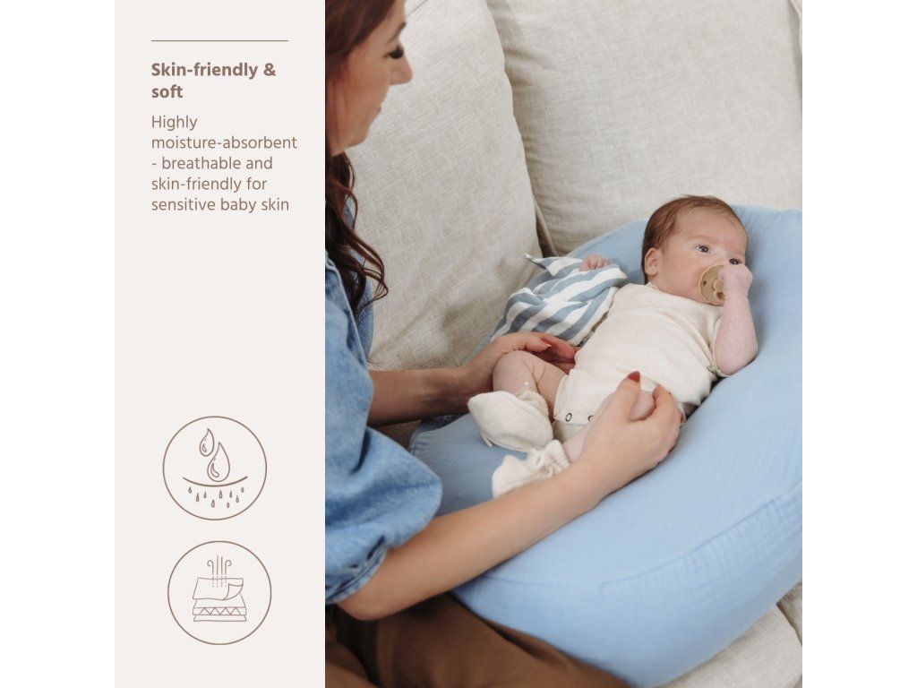 Poťah na dojčiaci alebo tehotenský vankúš z predpranej bavlnenej mušelínovej látky. Vďaka tomu môžete za okamih vytvoriť pre svoje dieťa pohodlné detské hniezdo.