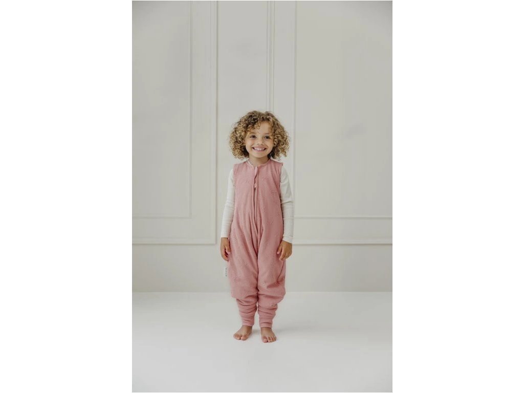 Spací vak je vyrobený - vonkajší materiál z 56% bavlny, 40% polyesteru a 4% spandexu a mäkkou vnútornou podšívkou zo 100% bavlny, ktorá zaisťuje mäkký komfort a príjemné prostredie na spanie s dostatočnou ventiláciou a dobrou reguláciou vlhkosti. Počas chladných nocí si vaše dieťa môže strčiť nožičky do nožičiek. Dlhý zips, ktorý ide až dole, uľahčuje obliekanie a vyzliekanie, uľahčuje prebaľovanie vášho dieťaťa. Spací vak na spanie má hodnotu TOG 2,0. Čím vyššia je hodnota TOG, tým je teplejšia.