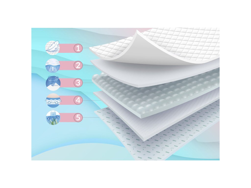 - Každý kúsok vďaka svojej 5-vrstvovej štruktúre okamžite absorbuje vlhkosť a hlavne nepreteká. Pri používaní Neno Neo sa nemusíte obávať nedostatku hygieny a čerstvosti.