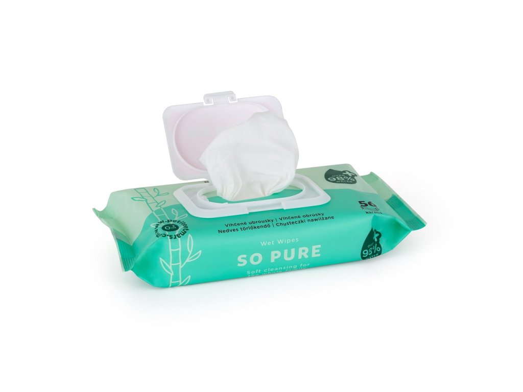 Vlhčené obrúsky So pure predstavujú dokonalú čistotu z prírody. Obrúsky sú vyrobené z bambusu a obsahujú viac ako 98% vody. Sú bez parfémov, citlivé k jemnej detskej pokožke a veľmi mäkké a príjemné na dotyk. Tento produkt si vyberajú rodičia, ktorí uprednostňujú prirodzenú a bezpečnú starostlivosť.