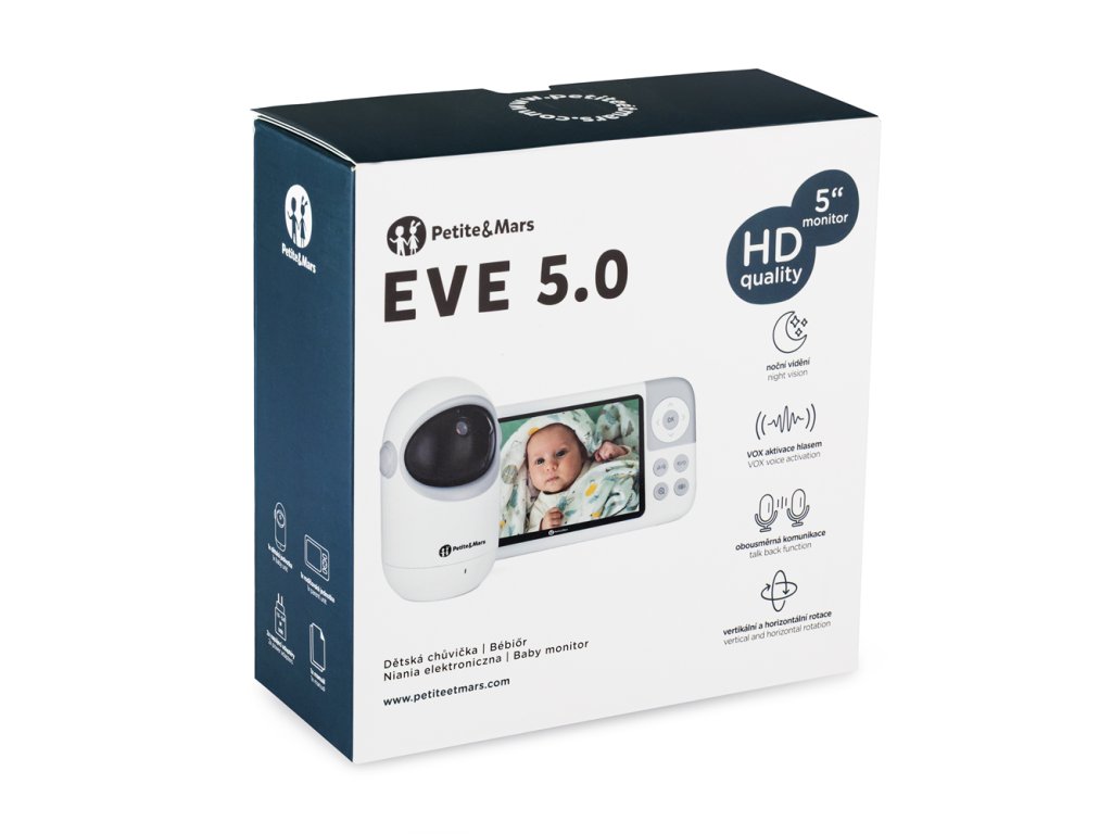 Kamera EVE 5.0 je navrhnutá tak, aby ste mali vždy dokonalý vizuálny prehľad o svojom dieťatku. Obraz sa prenáša v HD rozlíšení (720p) priamo na kvalitný 5" LCD displej rodičovskej jednotky, vďaka čomu vidíte každý detail – aj v noci, aj z diaľky.