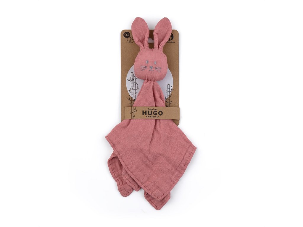 Mäkkučký mušelínový zajko Hugo má jednu tajnú záľubu. Najradšej zo všetkého sa vyvaľuje v posteli a spí. Je to skvelý kamarát a hračka na spanie pre najmenšie detičky. Hugo sa rád túli, prináša pocit tepla a nehy. S ním nikto nie je sám. Je veľmi príjemný a hebký na dotyk, dokáže dieťatko upokojiť po náročnom dni.