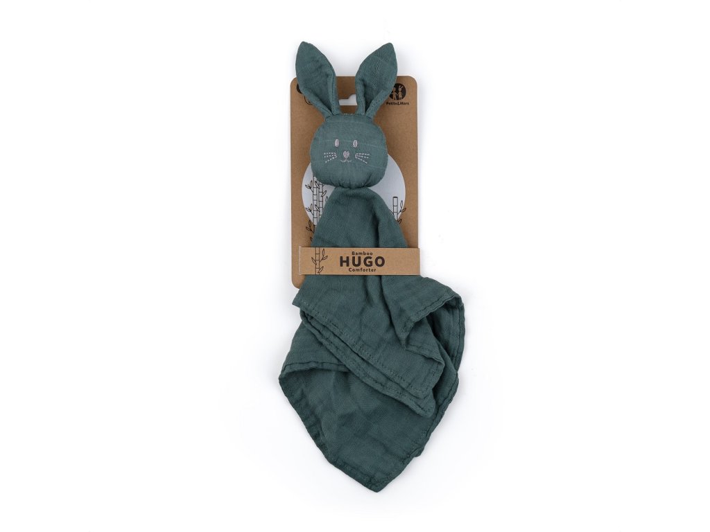 Mäkkučký mušelínový zajko Hugo má jednu tajnú záľubu. Najradšej zo všetkého sa vyvaľuje v posteli a spí. Je to skvelý kamarát a hračka na spanie pre najmenšie detičky. Hugo sa rád túli, prináša pocit tepla a nehy. S ním nikto nie je sám. Je veľmi príjemný a hebký na dotyk, dokáže dieťatko upokojiť po náročnom dni.