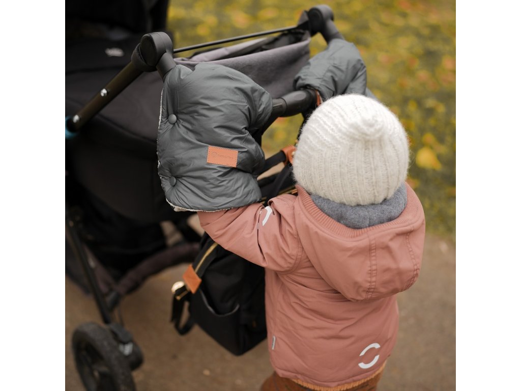 Hrejivý rukávnik spríjemní kočíkovanie v chladnom počasí. Vďaka samostatným dvom častiam rukávnik – rukavice pripevníte na akýkoľvek model kočíka. Či už ide o kočík so spojenou rukoväťou, s mechanizmom skladania na rukoväti, alebo golfáč s oddelenými rúčkami. Vodeodolná úprava ochráni pred snehom a jemným dažďom.