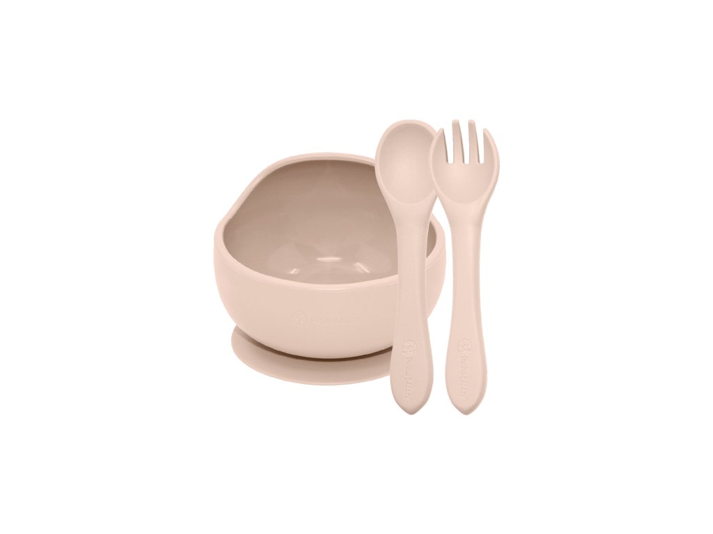 PETITE&MARS Set jedálenský silikónový TAKE&MATCH 2 ks miska + príbor Desert Sand 6m+