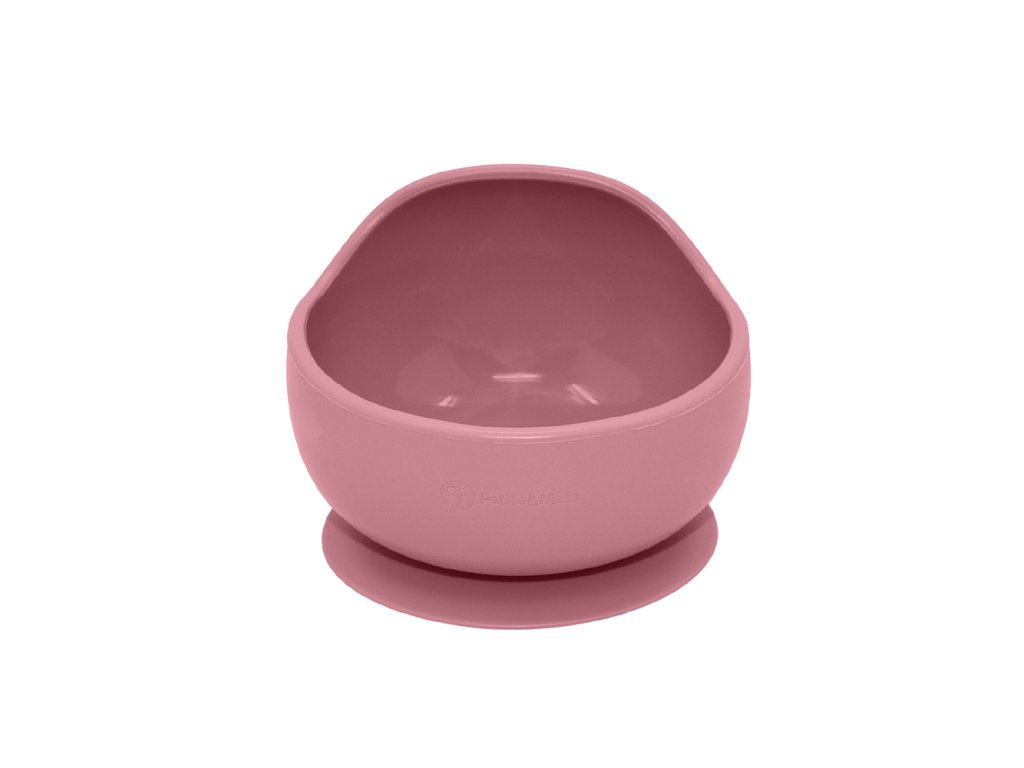 PETITE&MARS Set jedálenský silikónový TAKE&MATCH 2 ks miska + príbor Dusty Rose 6m+