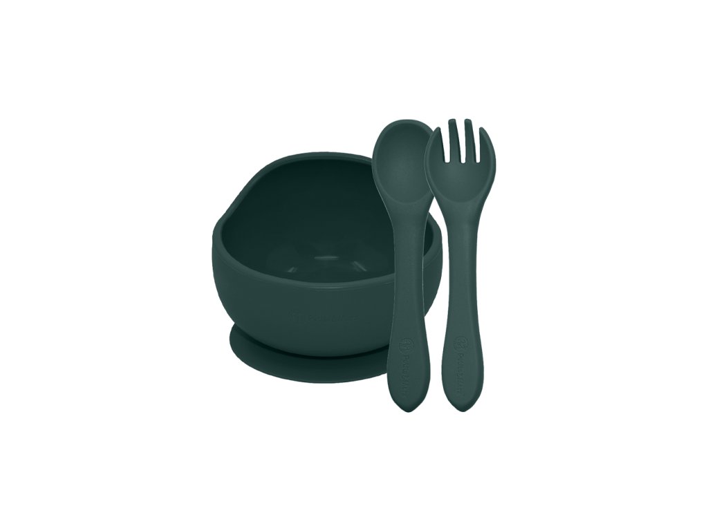 PETITE&MARS Set jedálenský silikónový TAKE&MATCH 2 ks miska + príbor Misty Green 6m+