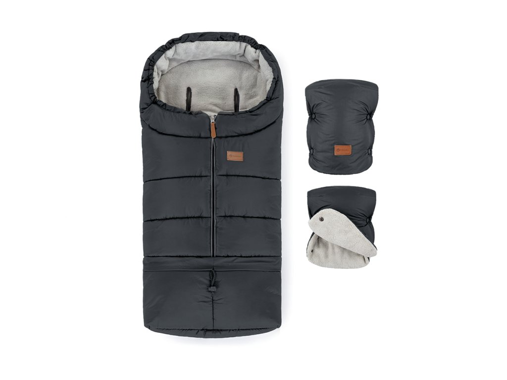 PETITE&MARS Set zimný fusak Jibot 3v1 + rukavice na kočík Jasie Charcoal Grey