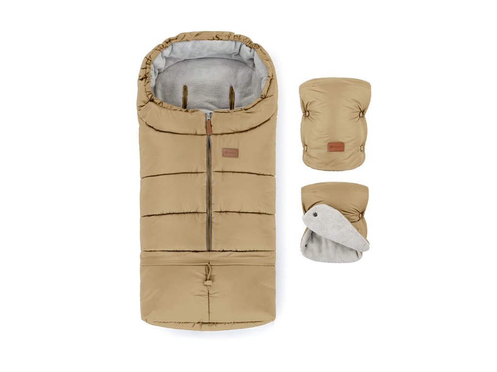 Komplet výbava na zimné kočíkovanie. Hrejivý predĺžiteľný fusak Jibot 3v1 pre bábätko a hrejivé rukavice Jasie na kočík pre maminku. Všetko krásne zladené v jednotnom odtieni.
