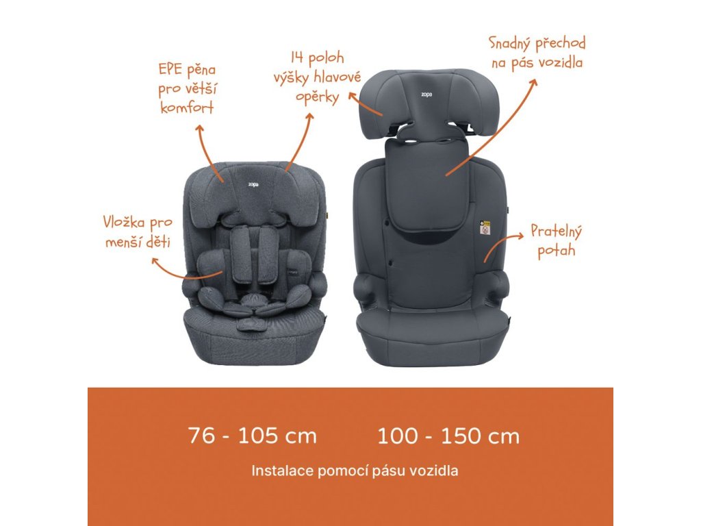 Zopa Alfa R129 je praktická a spoľahlivá autosedačka, ktorá porastie s vaším dieťaťom od batolacieho veku až do 12 rokov. Je určená pre deti s výškou od 76 do 150 cm a spĺňa prísnu bezpečnostnú normu ECE R129 (i-Size). Vďaka inštalácii pomocou trojbodového bezpečnostného pásu vozidla je autosedačka vhodná do každého auta, bez ohľadu na to, či je vybavené systémom Isofix, čo z nej robí univerzálne riešenie pre celú rodinu.