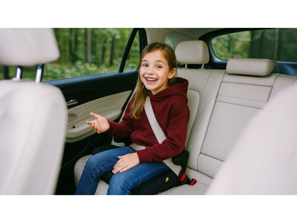 Podsedák spĺňa najnovšiu bezpečnostnú normu ECE R129 (i-Size) a má zásadnú funkciu: zabezpečuje správne vedenie 3-bodového bezpečnostného pásu cez boky a rameno, nie cez krk a mäkké brucho.