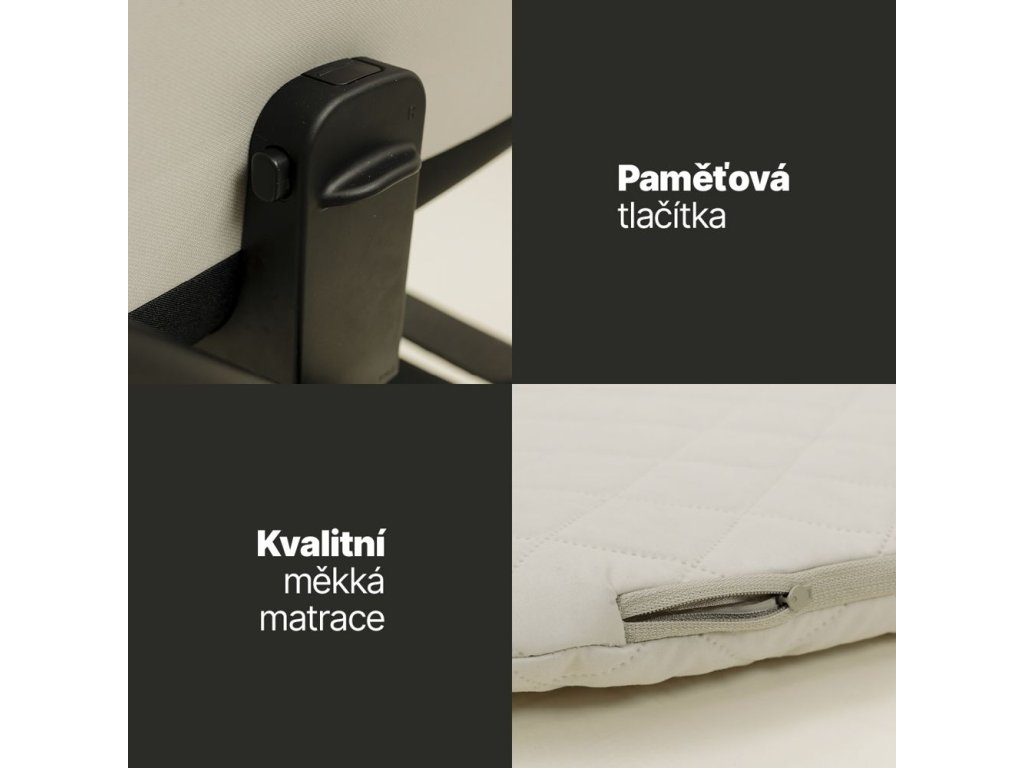 - Výškovo nastaviteľné sedenie aj strieška (3 úrovne)