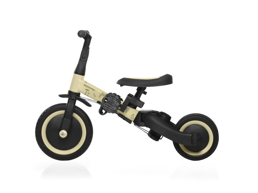 Vďaka šikovnej konštrukcii je možné jednotlivé časti ľahko odobrať alebo prestavať – bez potreby náradia. Prechod z trojkolky na odrážadlo či bicykel je otázkou niekoľkých minút. Trojkolka má navyše kompaktné rozmery, takže sa bez problémov zmestí do kufra auta a je vhodná aj na cestovanie.